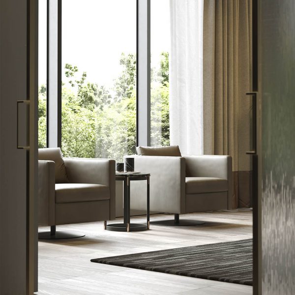 Circular side table with marble top and metal base. A versatile piece that matches almost any style of decoration. You can even combine the two sizes for a bold and even more luxurious design.